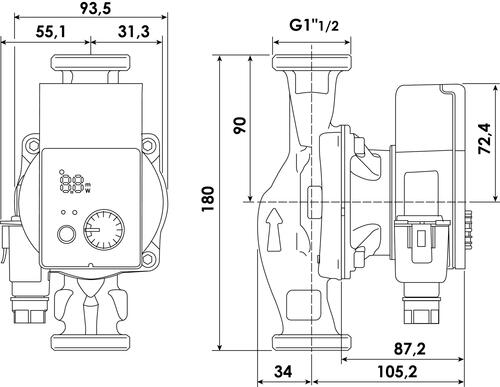 - Pompe de circulation sans entretien à rotor noyé avec raccord fileté, moteur synchrone auto-protégé avec technologie ECM et régulateur de puissance électronique intégré pour régulation de la pression différentielle.