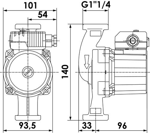 - Circulateur à rotor noyé avec commutation manuelle de la vitesse trois niveaux pour installation en ligne.