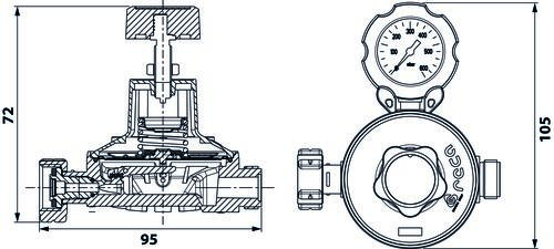 Detendeur basse pression avec manomètre pour gaz propane