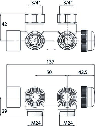 Distributeur thermostatique bitube mural M24