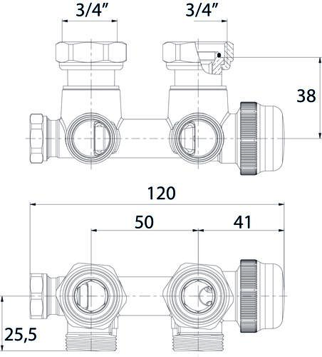 Distributeur thermostatisable bitube mural 3/4EK-15/21