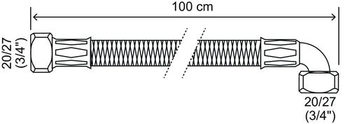 Flexible chauffage coudé 1000mm ø19 à 2 écrous tournants 20/27