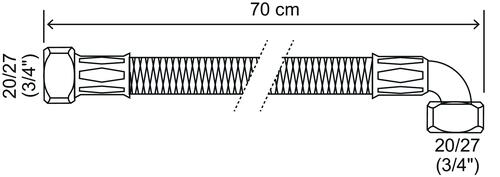 Flexible chauffage coudé 700mm ø19 à 2 écrous tournants 20/27