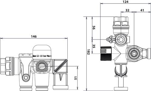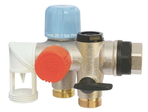 - Monobloc compact avec groupe de sécurité, limiteur de température réglable de 35° à 50°C et raccord isolant diélectrique.