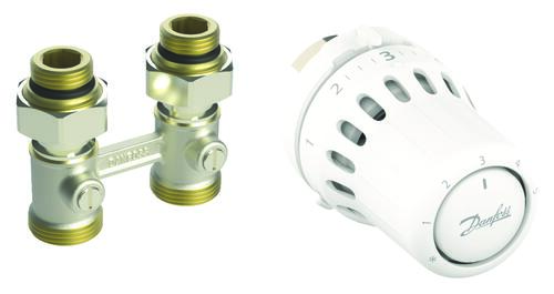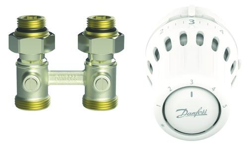 - Tête Danfoss React M30x1.5. - Robinet bitube en H droit type RLV-KB pour raccordement au sol.
