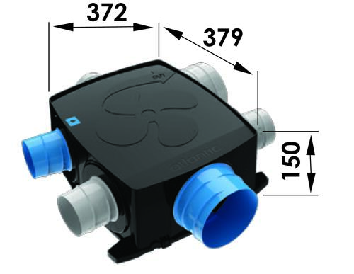 - Groupe extra-plat (150 mm) et modulable, adapté aux faux plafonds, pièces techniques, espaces réduits...