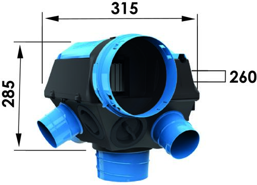 - 1 groupe Hygrocosy Basse Consommation avec 2 piquages Twist & Go Ø 80, 1 piquage Twist & Go Ø 125 et rejet démontable Ø 160.