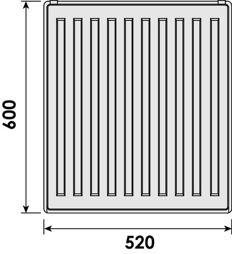 - Dimensions : hauteur 600 mm, largeur 520 mm, épaisseur 105+7 mm.