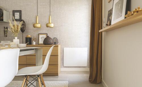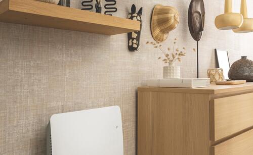 - Radiateur blanc crème conçu pour répondre aux enjeux de la décarbonation du logement.