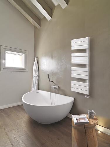 - Radiateur sèche-serviettes en acier blanc RAL 9010 pour chauffage central.