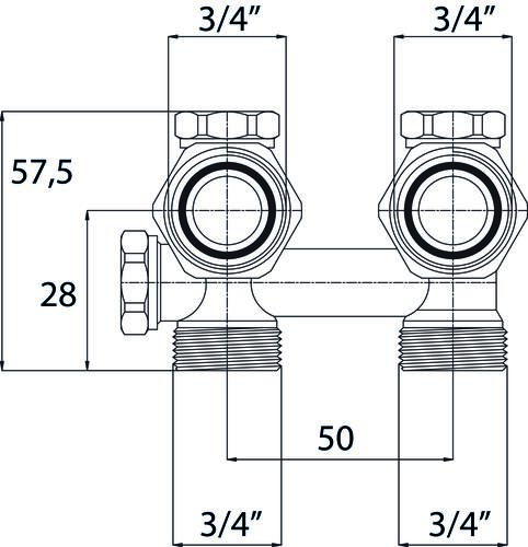 Vanne en H monotube/bitude à raccordement mural 3/4EK-20/27