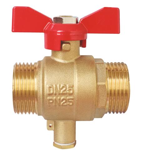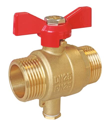 - Vanne à sphère mâle/mâle avec prise porte-sonde pour un compteur d'énergie thermique ou pour la mesure de température.