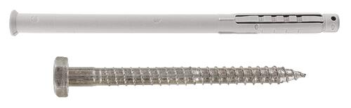 - Cheville longue Ø10 x 240 mm pour fixation des produits lourds sur des cloisons isolées avec de la laine de roche ou de polystyrène expansé.