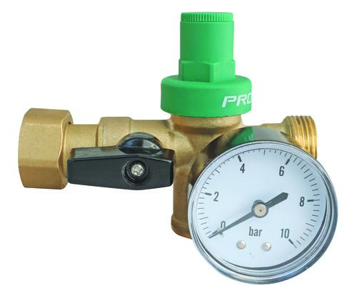 - 3 fonctions : Réducteur de pression à piston avec manomètre, Vanne d'isolement et Clapet anti-retour NF.
