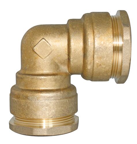 - Raccord coudé à 90° composé d'un corps, d'une bague plate, d'un écrou et d'une bague crantée en laiton pour une bonne tenue dans le temps.