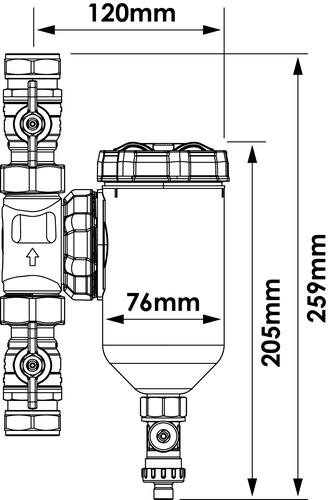 - Filtre compact pour une filtration magnétique puissante des débris de l'installation de chauffage.