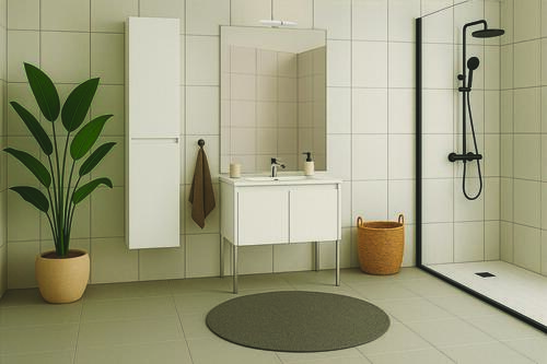 - Un plan vasque en céramique blanche avec trop plein intégré.