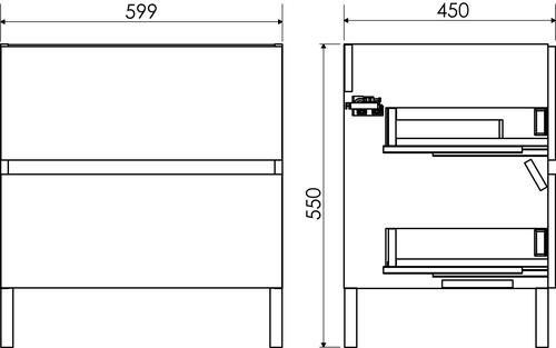 - 2 tiroirs avec glissières invisibles soft close pour une utilisation silencieuse et fluide.