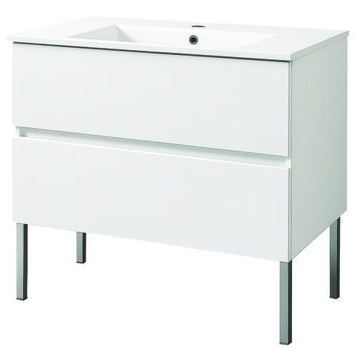 - Un plan vasque en céramique blanche avec trop plein intégré.