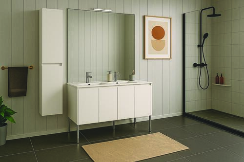 - Un plan vasque en céramique blanche avec trop plein intégré.