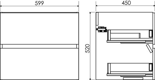 - 2 tiroirs avec glissières invisibles soft close pour une utilisation silencieuse et fluide.