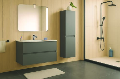 - 2 tiroirs avec glissières invisibles soft close pour une utilisation silencieuse et fluide.