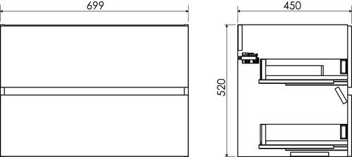 - 2 tiroirs avec glissières invisibles soft close pour une utilisation silencieuse et fluide.