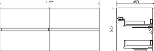 - 4 tiroirs avec glissières invisibles soft close pour une utilisation silencieuse et fluide.