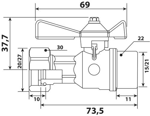 Robinet d'arrêt compteur droit M15/21 à boisseau sphérique à purge