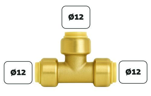 Té PushFit laiton égal à clipser Ø14