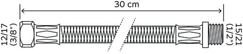 Flexible sanitaire 1 écrou tournant femelle 12/17 - 1 raccord mâle 15/21 - Longueur 300 mm - DN8