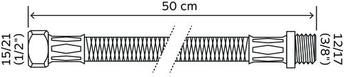 Flexible sanitaire 1 écrou tournant femelle 15/21 - 1 raccord mâle 12/17 - Longueur 500 mm - DN8