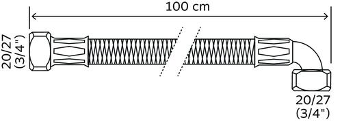 Flexible sanitaire 1 écrou tournant femelle 20/27 - 1 coude écrou tournant - Longueur 1000 mm - DN8