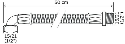 Flexible sanitaire 1 raccord mâle 15/21 - 1 coude écrou tournant femelle 15/21 - Longueur 500mm -DN8