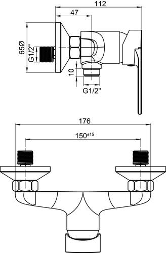 - Raccords muraux excentrés avec rosaces Ø65 mm.