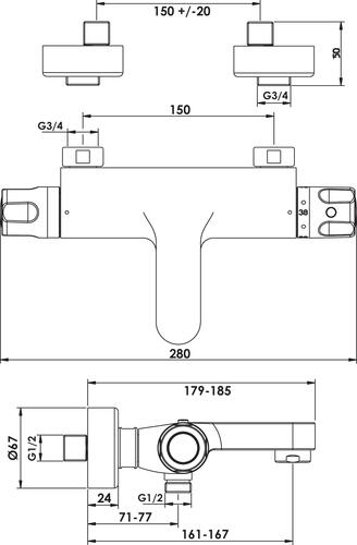 - Raccords muraux excentrés avec système de fixation facilitant FIXOFAST et rosaces.