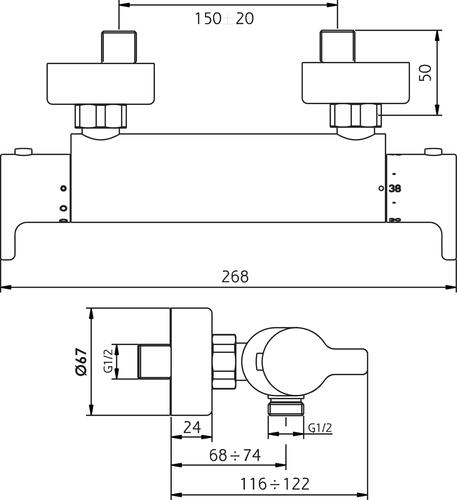 - Mitigeur avec écrous prisonniers F20/27 (G3/4'') verrouillables à étanchéité intégrée - Sortie douchette en M15/21 (G1/2'') avec filtre et clapet anti-retour incorporés au corps