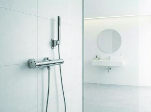 - Cartouche thermostatique monobloc et butée de sécurité à 38°C.
