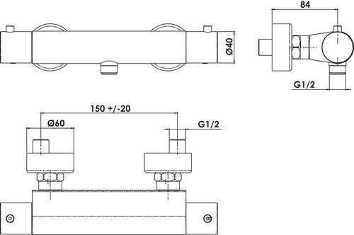 - Raccords muraux excentrés avec rosaces.
