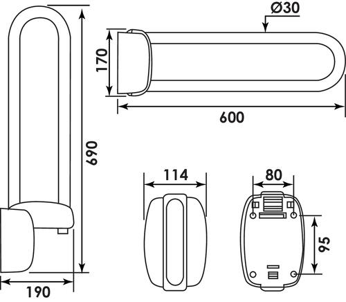 - Tube aluminium Ø30 mm recouvert Epoxy blanc.