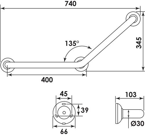 Barre de maintien coudée blanche 135° 40x40cm - PELLET