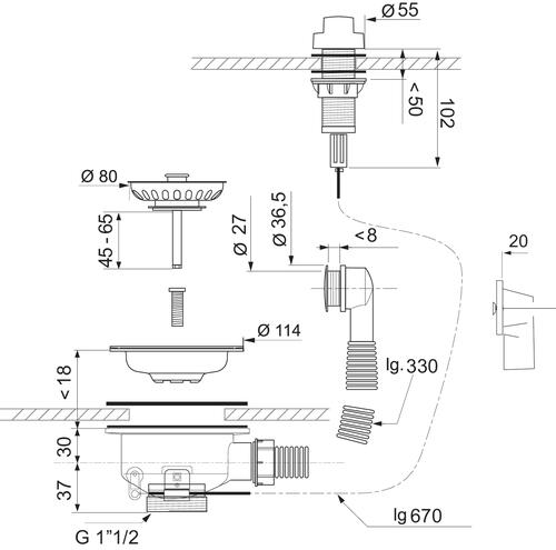 - Vidage à commande automatique chromé pour évier 1 cuve Ø90mm.