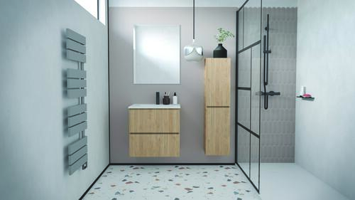- Livré pré-monté, sans robinetterie, sans visserie de fixation murale, sans vasque & sans miroir.