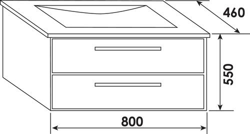 - Corps de meuble avec vide sanitaire 8cm. Structure du caisson (façade et corps) en panneaux de particules mélaminé, épaisseur : 16mm.