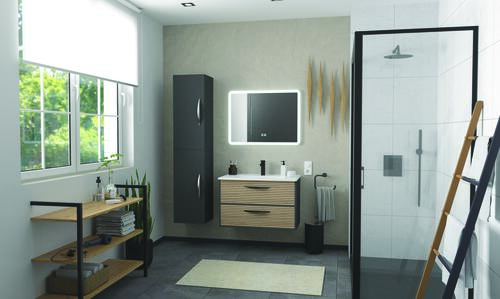 - Livré pré-monté, sans robinetterie, sans visserie de fixation murale, sans vidage, sans plan vasque, sans miroir.