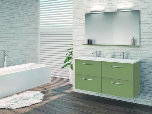 - Livré pré-monté, sans robinetterie, sans visserie de fixation murale, sans vidage, sans plan vasque, sans miroir.