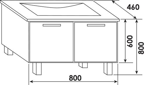 - Corps de meuble avec vide sanitaire 8cm. Structure du caisson (façade et corps) en panneaux de particules mélaminé, épaisseur : 16mm.