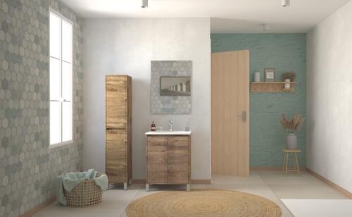 - 2 portes réversibles (ouverture gauche ou droite) en panneau de particules laqué blanc avec poignées prise de main et fermeture amortie.