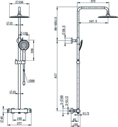 - Colonne de douche thermostatique CALIPS'O avec un mitigeur à corps froid anti-brûlure et une colonne télescopique.