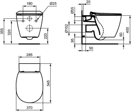 - Cuvette en porcelaine vitrifiée blanc sortie horizontale.